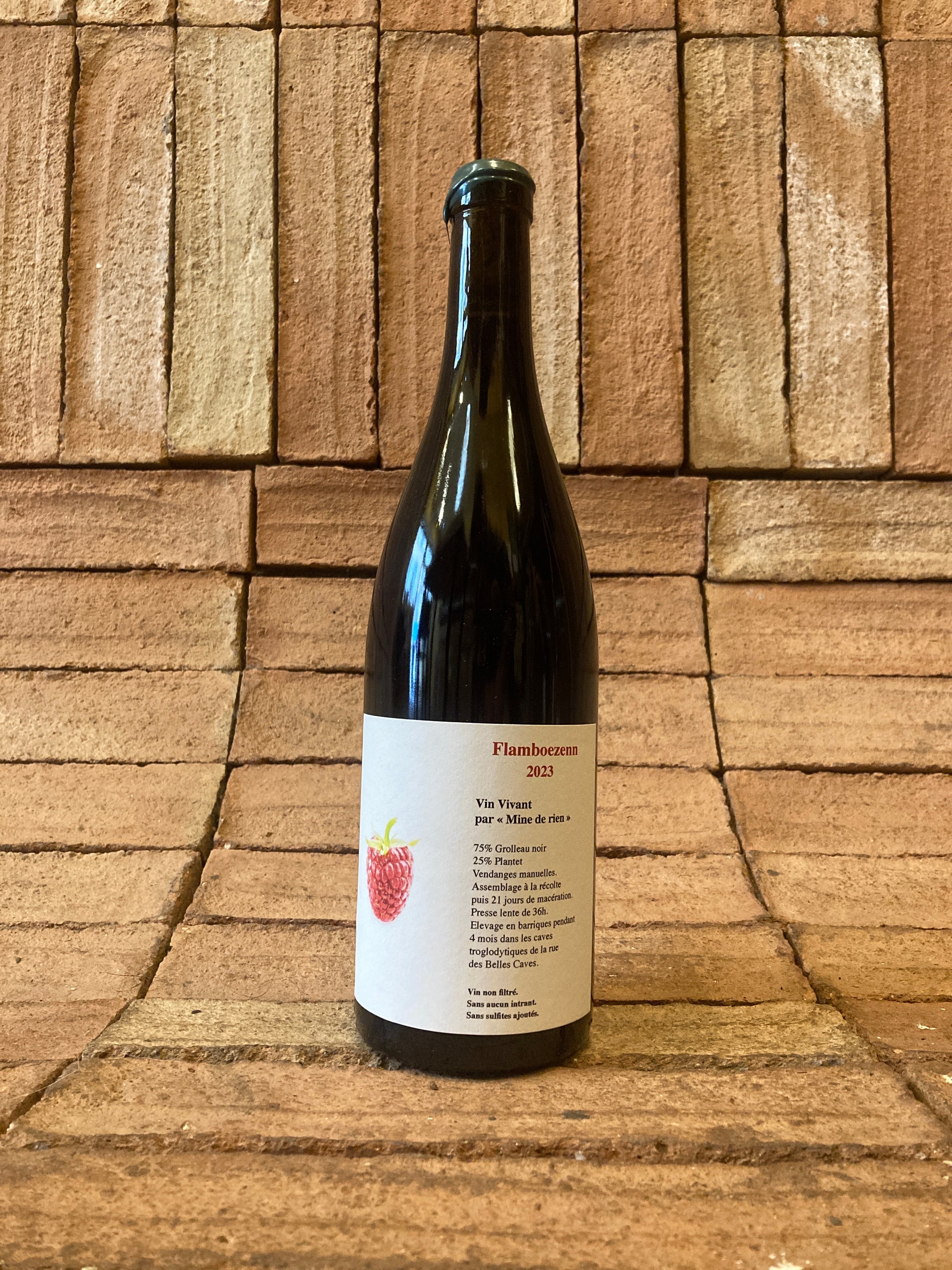 Assemblage de 75% Grolleau Noir et 25% Plantet (vieux hybride de la Loire), 21 jours de macération et élevage pendant 4 mois en barrique.