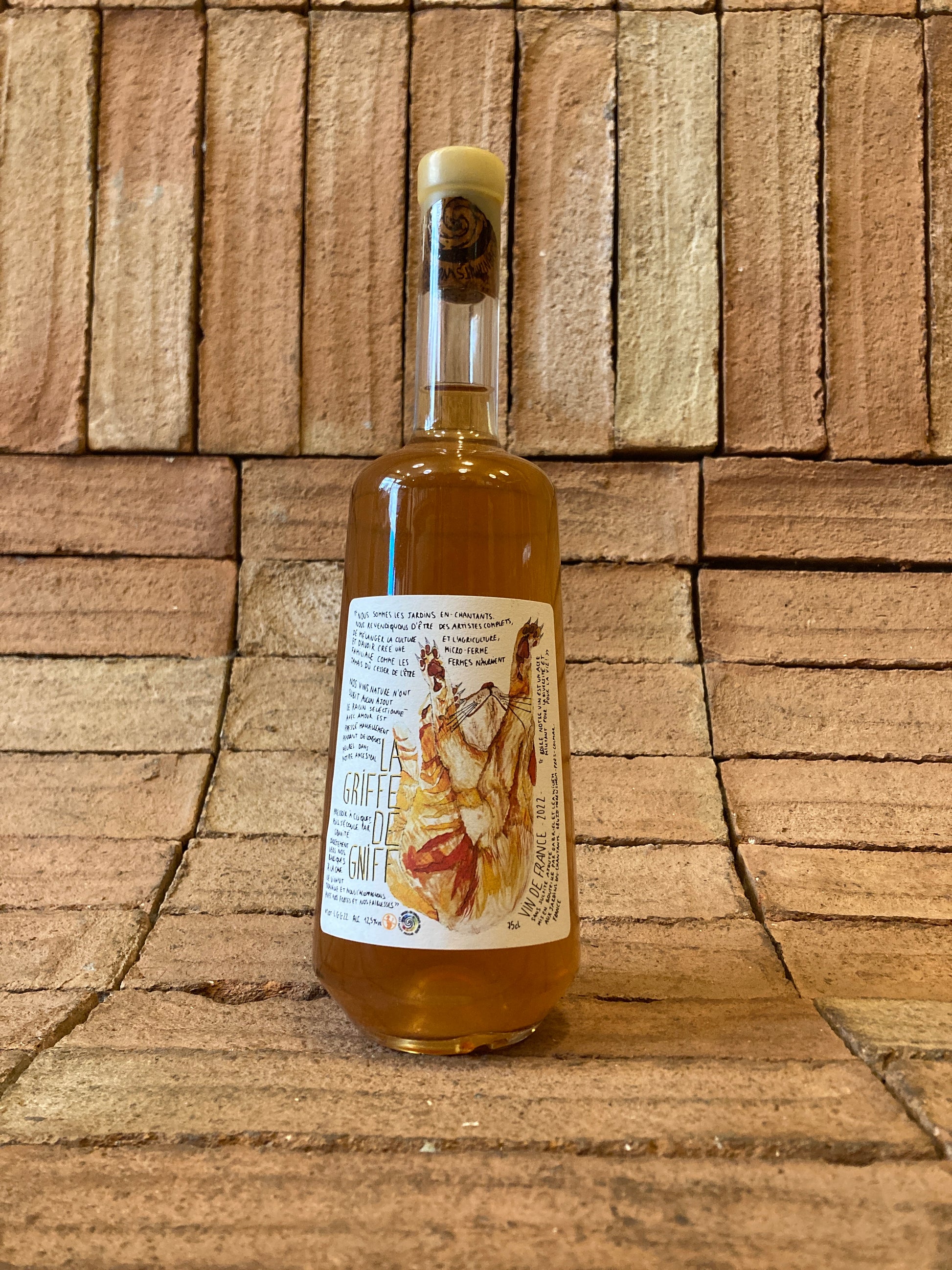 Macération carbonique de Gewurztraminer, Riesling, Sylvaner, Muscat et Auxerrois, veillé dans une barrique à forme poire.